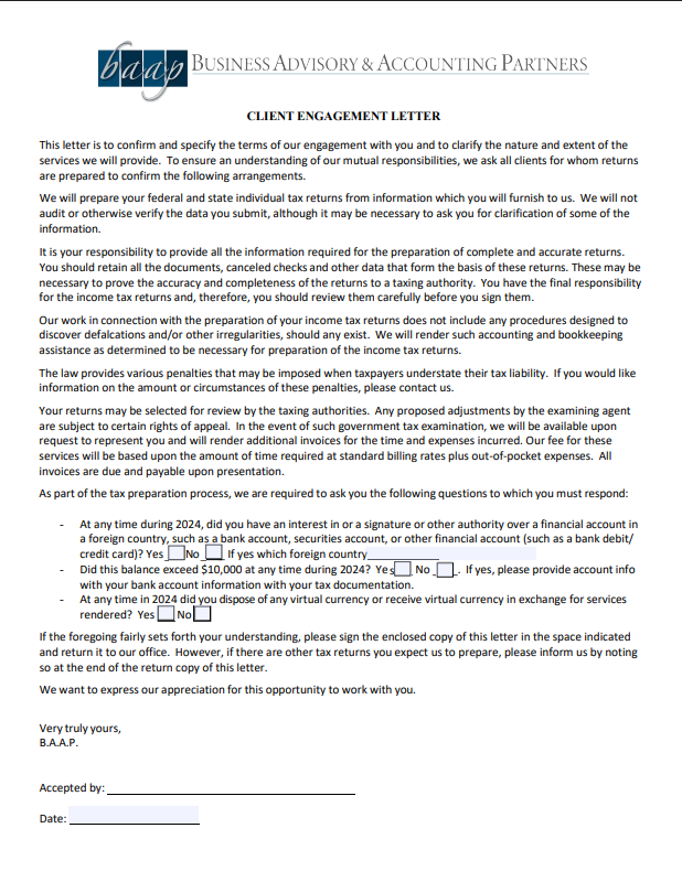 I’ve been working with BAAP for several years now, and every year I’m reminded why I continue to trust them with my financial management, planning and year-end tax returns. Their team is not only highly knowledgeable and detail-oriented, but they also take the time to explain the tax implications and opportunities that are specific to my situation. If you're looking for a professional, reliable, and personable CPA firm to handle your taxes with care and precision, I highly recommend BAAP.